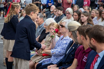 A somber remembrance of those who lost their lives in sacrifice on Sept. 11, 2001, at the World Trade Center Towers in New York City. The campus family and those in the community are welcomed to gather as the 9/11 flag is raised at the “Lest We Forget” 9/11 Memorial on James Forsythe Drive.